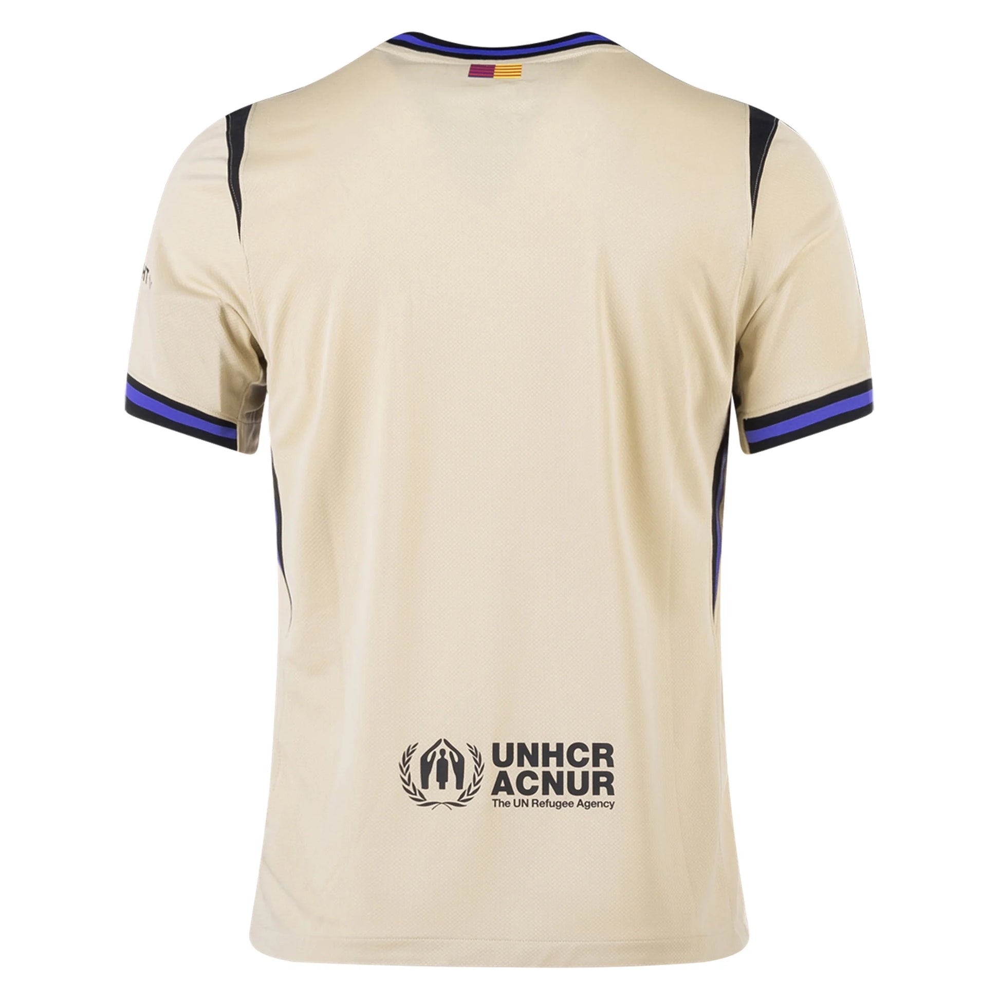 Started by the Jordan brand and now carrying on to Kobe’s – basketball logos continue to appear on soccer jerseys, giving kits another edge in fashion, collaboration and statement-making. Here on the Barcelona 25/26 away jersey, you’ll find The Sheath – also known as the Mamba logo. This is Kobe Bryant’s defacto logo, representing a sword in a sheath, where the sword is a player’s naked talent and the sheath is the training and life experiences that mold it. This jersey’s applications – the Sheath and the Barca crest – feature a textured build that is snakeskin-like in execution. This is an homage to the Black Mamba – the African snake that Kobe’s nickname is derived from.